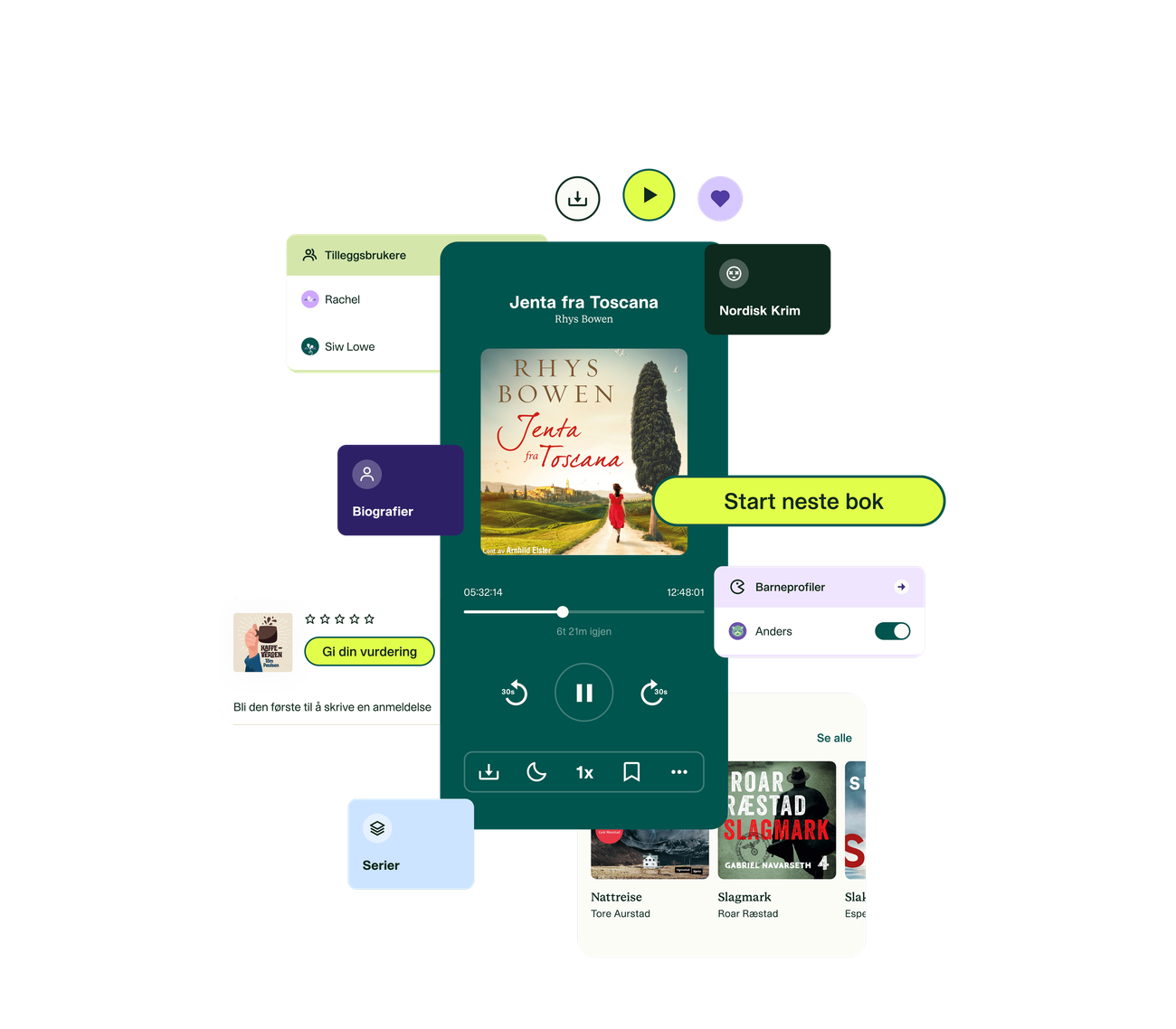 Fabel er den norske abonnementstjenesten som tilbyr strømming av lydbøker og lydserier fra norske og utenlandske forfattere. Lytt når du er på farten, når du gjør husarbeid eller ved leggetid. Last ned lydbøkene og lytt når det passer deg best.