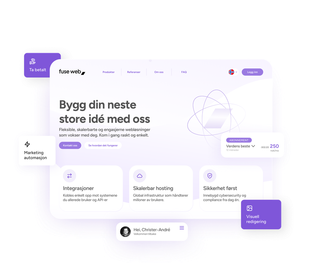 Fuse Web er et rammeverk for web-apper basert på React med Fuse som backend og CMS. Det gir oss full kontroll over alle aspekter av nettsiden; fra design til SEO, ytelse, CDN, animasjon og tilgjengelighet.