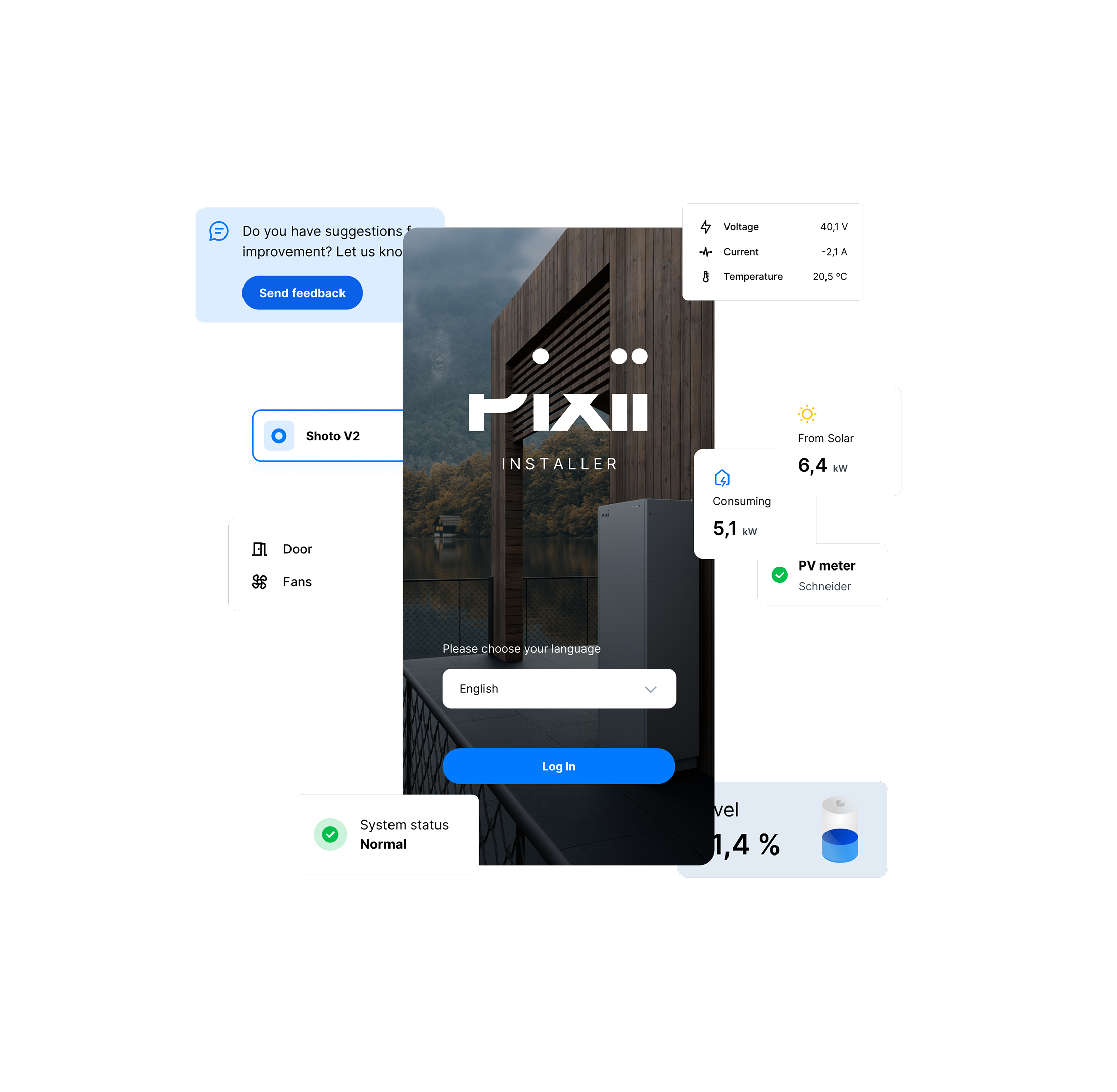 Etter lanseringen av Pixii Home™ møtte Pixii på en utfordring. Installasjon- og konfigurasjonsprosessen var ikke strømlinjeformet nok til å levere i de nødvendige volumene. Opplæring og gjennomføring ble for tidkrevende, så et nytt konfigurasjonsgrensesnitt for installatører var nødvendig.