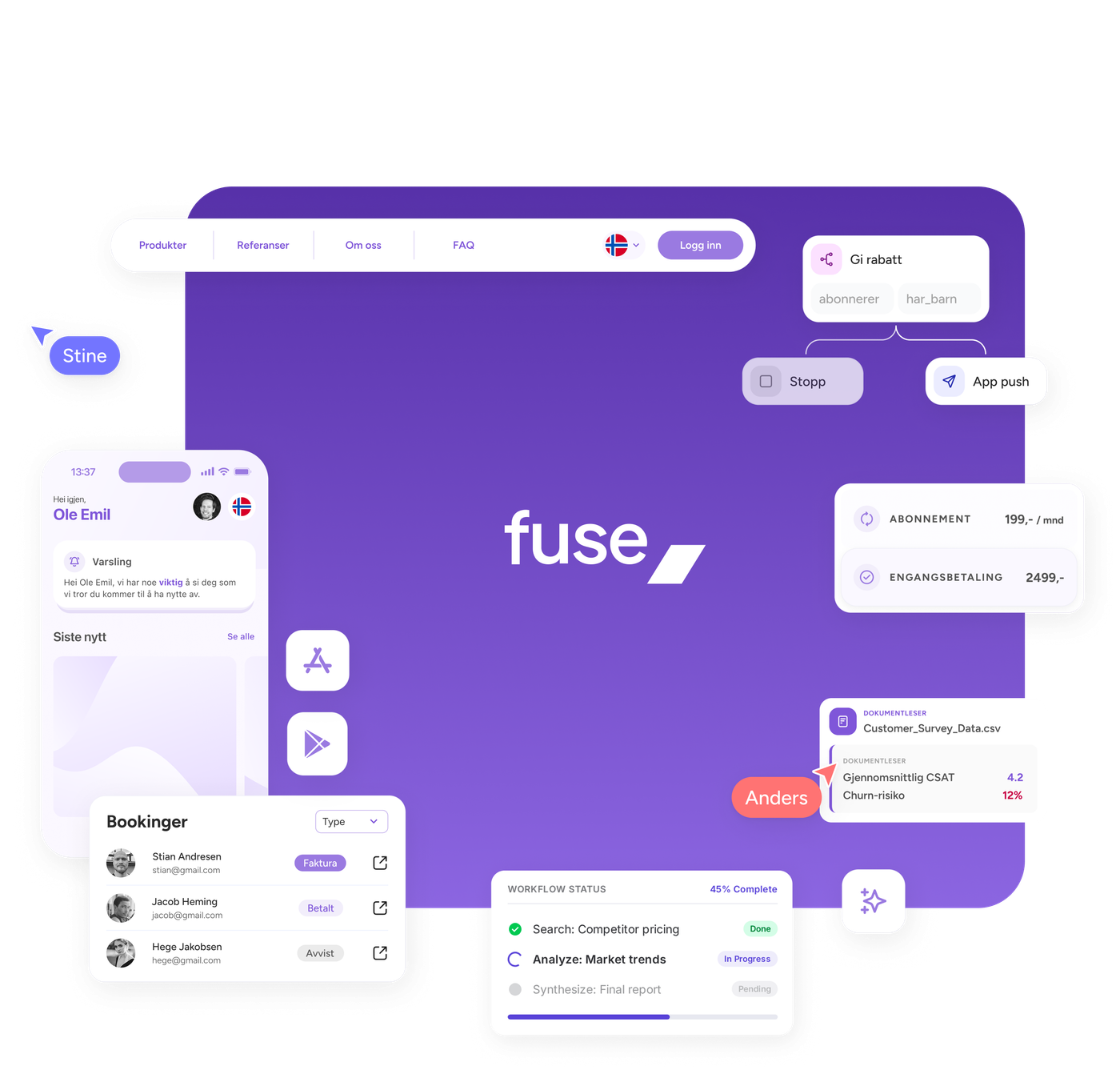 Fuse Studio samler all data på ett sted. Et grensesnitt hvor alle ansatte får god oversikt over kunder, kampanjer, bookinger, innhold, med muligheter til å samarbeide i sanntid.