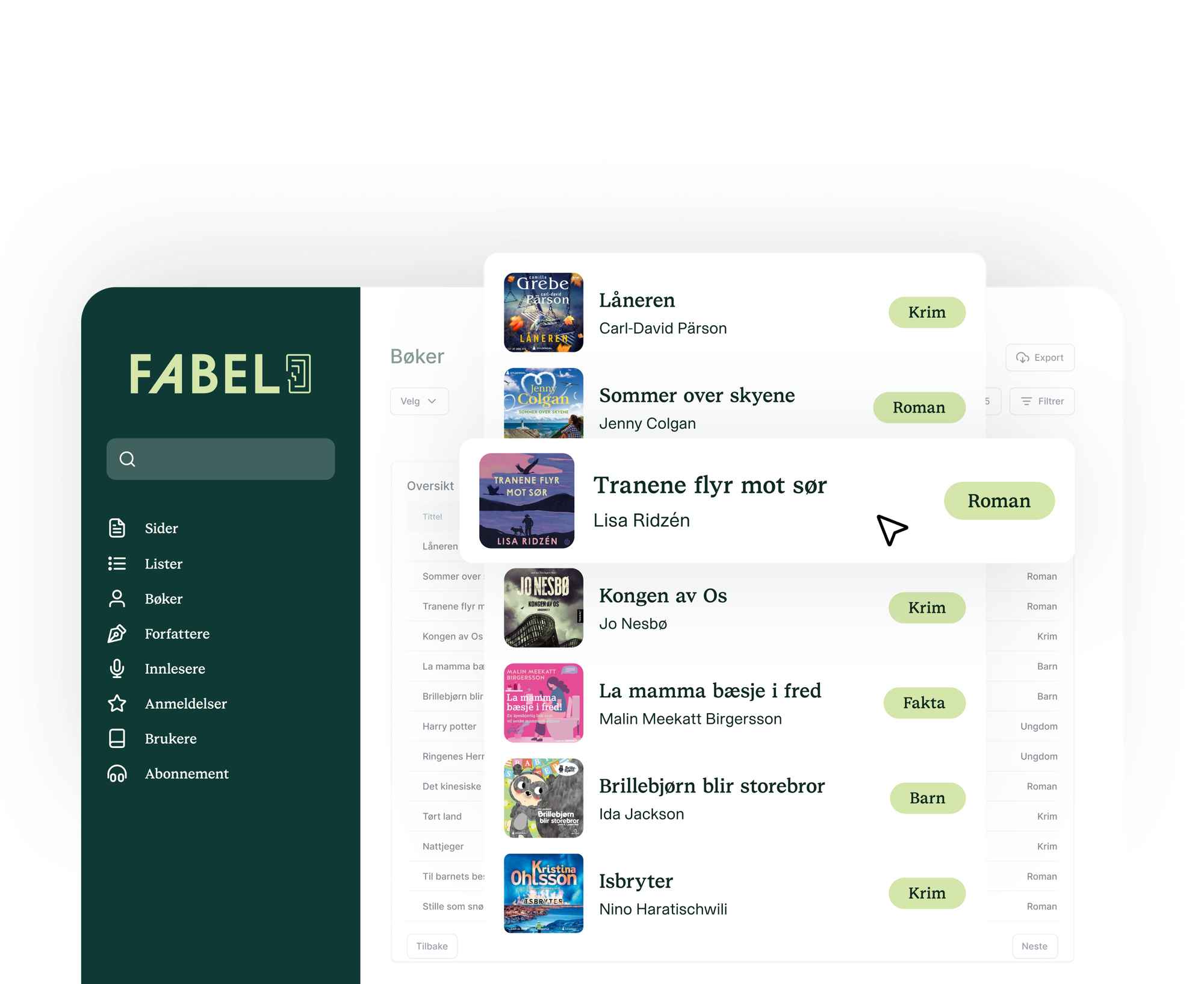 Fabel er den norske abonnementstjenesten som tilbyr strømming av lydbøker og lydserier fra norske og utenlandske forfattere. Lytt når du er på farten, når du gjør husarbeid eller ved leggetid. Last ned lydbøkene og lytt når det passer deg best.